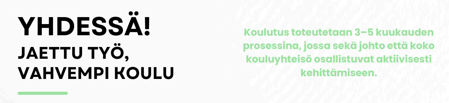 Prosessi vahvistaa jaettua asiantuntijuutta, lisää työn sujuvuutta ja luo yhteistä suuntaa arjen rakenteisiin – koko koulun henkilöstölle.